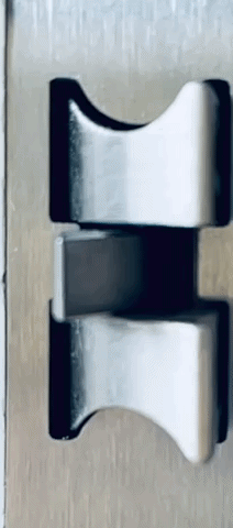 Ein zusätzlicher dreieckiger Auslöser (Steuerfalle) in der Mitte aktiviert beim Zuziehen eine interne Mechanik, die die Hauptfalle starr schaltet. Die Falle verliert ihre Elastizität und wirkt wie ein massiver Riegel.